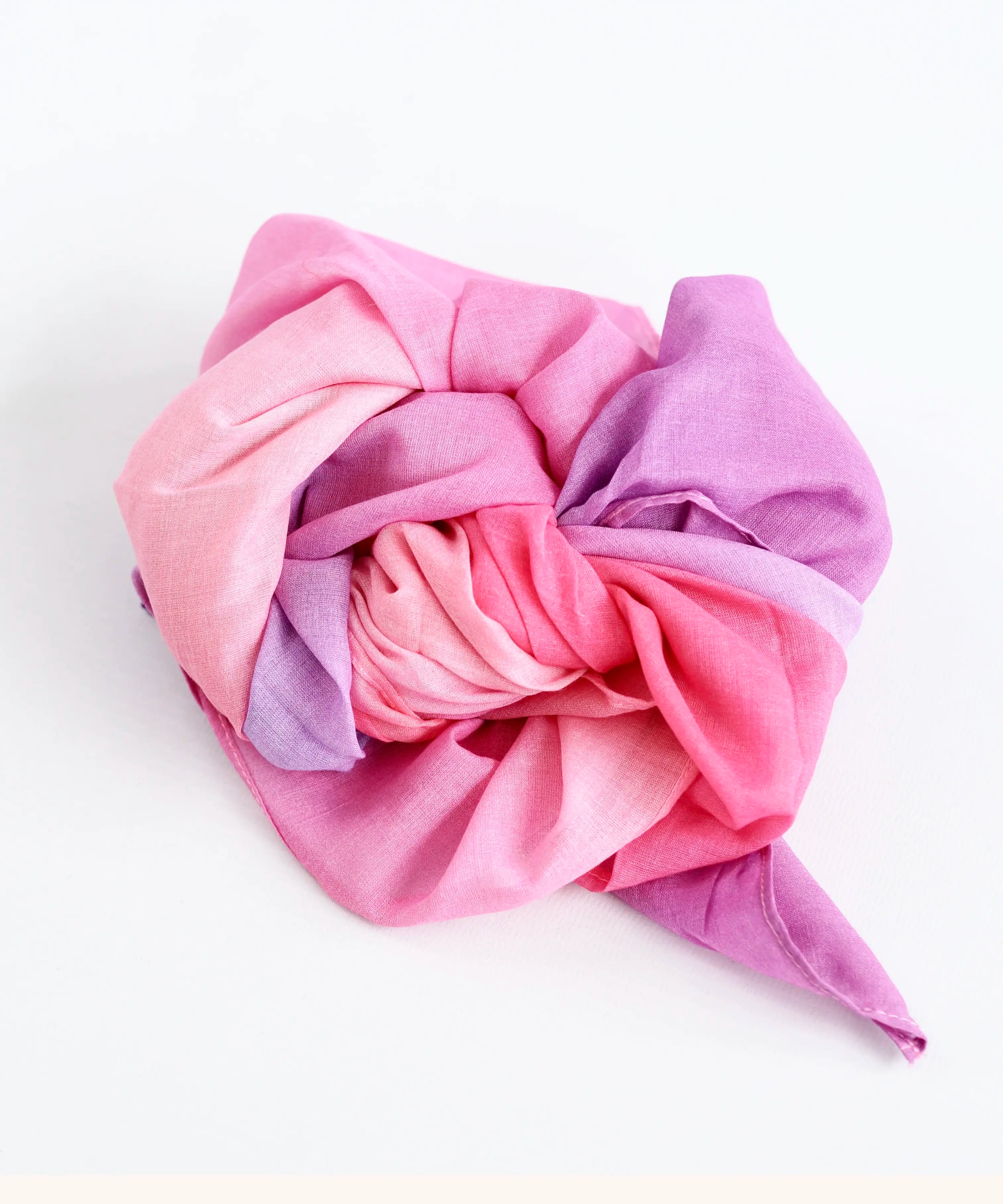 Laura's play cotton pink and purple gradient playcloth, made from 100% organic cotton ruffled up into a pile