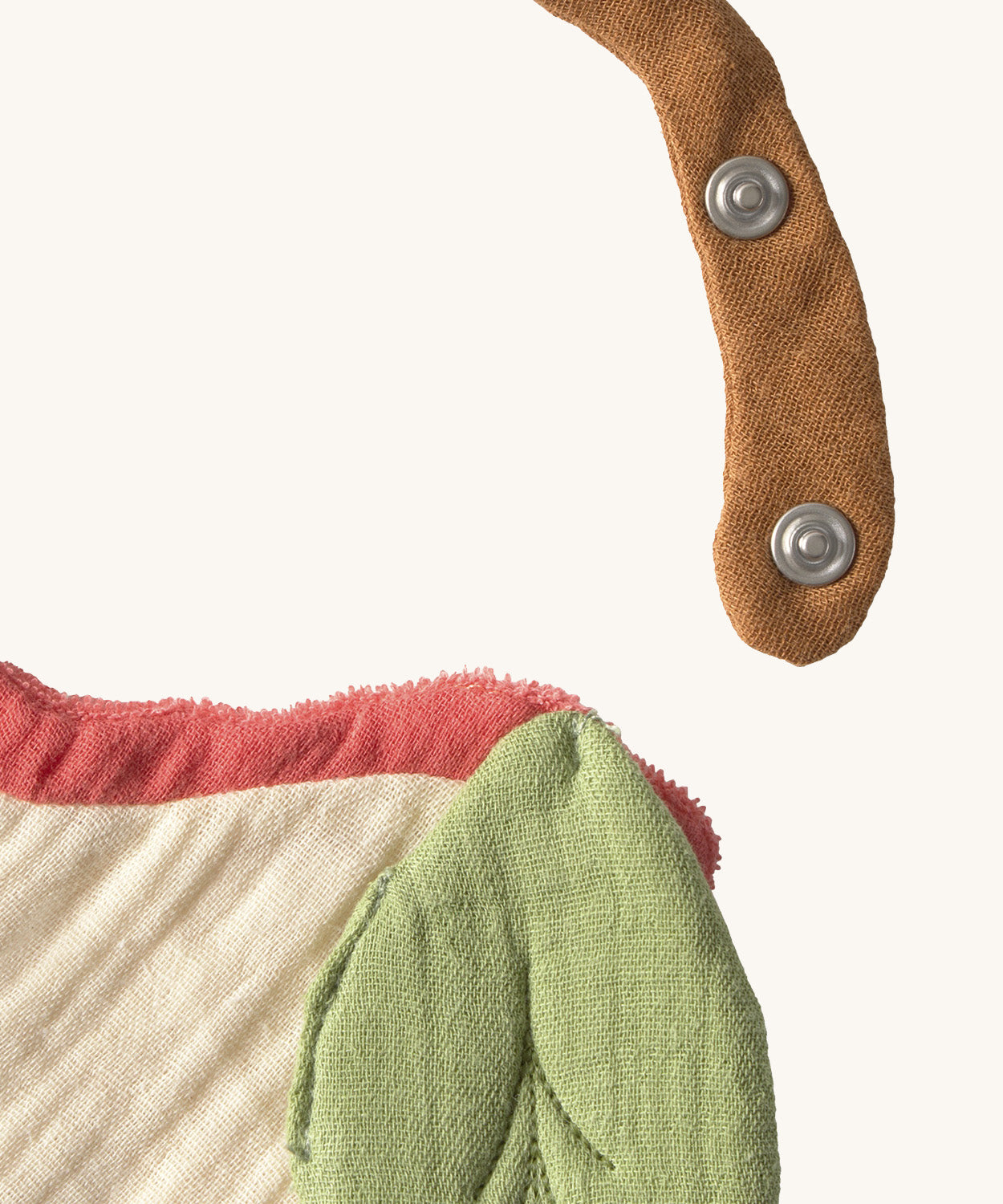 Designed for growing babies, the bib fastens at the “stem” with two adjustable poppers, ensuring a secure and comfortable fit from newborn and beyond. Handmade with embroidered details and Oli & Carol’s signature logo.