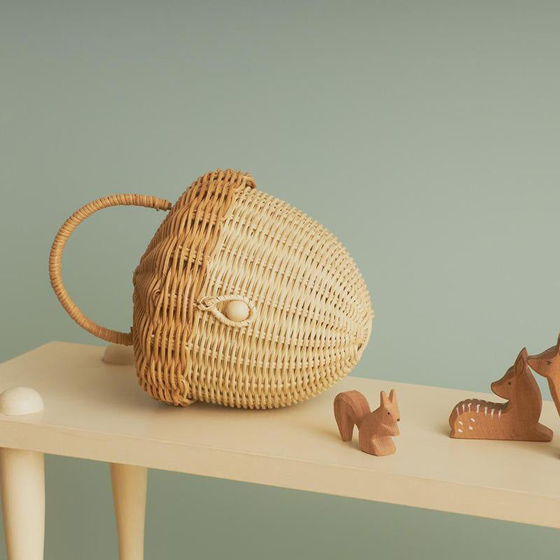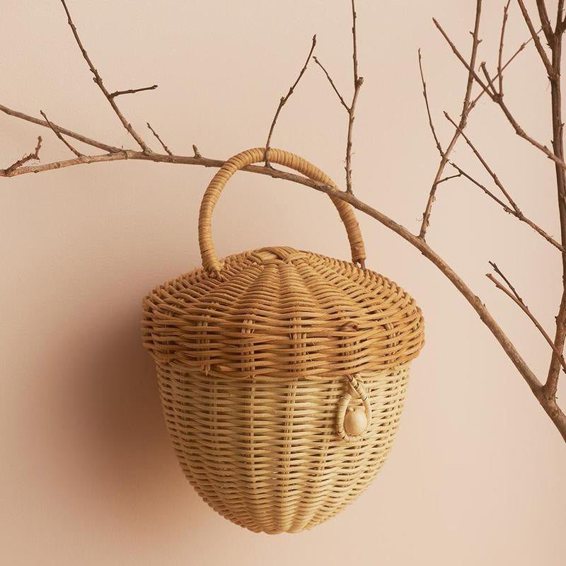 Children will love to carry little treasures in this adorable Acorn Bag from Olli Ella inspired by nature, made from natural rattan in two tones. This cute little acorn shaped clutch is lightweight and comes complete with a rattan handle, children will want to take it everywhere they go. Little hands will love this modern scandi inspired toy acorn bag that will hold your child’s favourite dolls, trinkets, and natural treasures, and can be set up anywhere, ready to play.