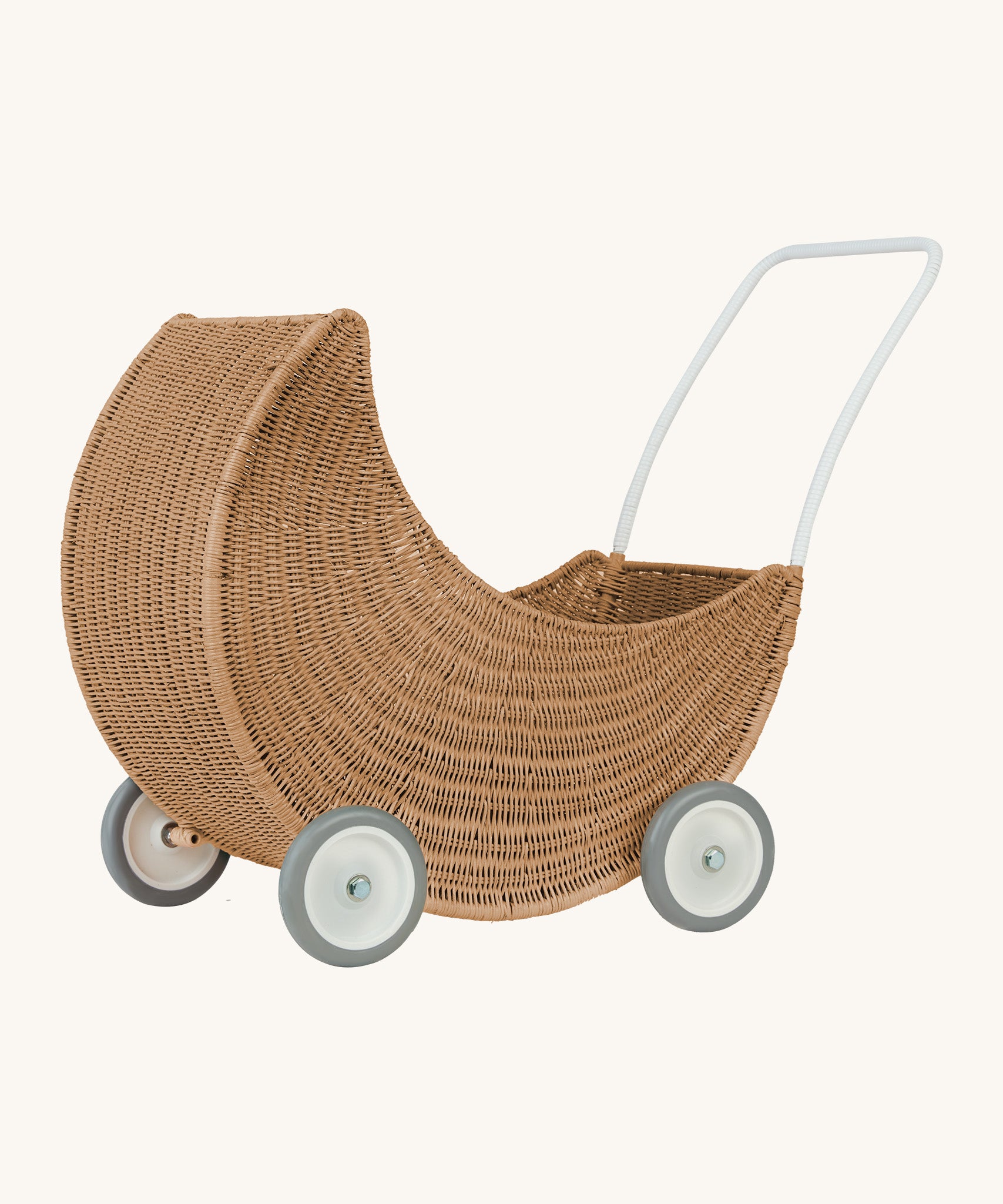 Olli Ella Moon Strolley - Rattan Toy Pram | Natural
