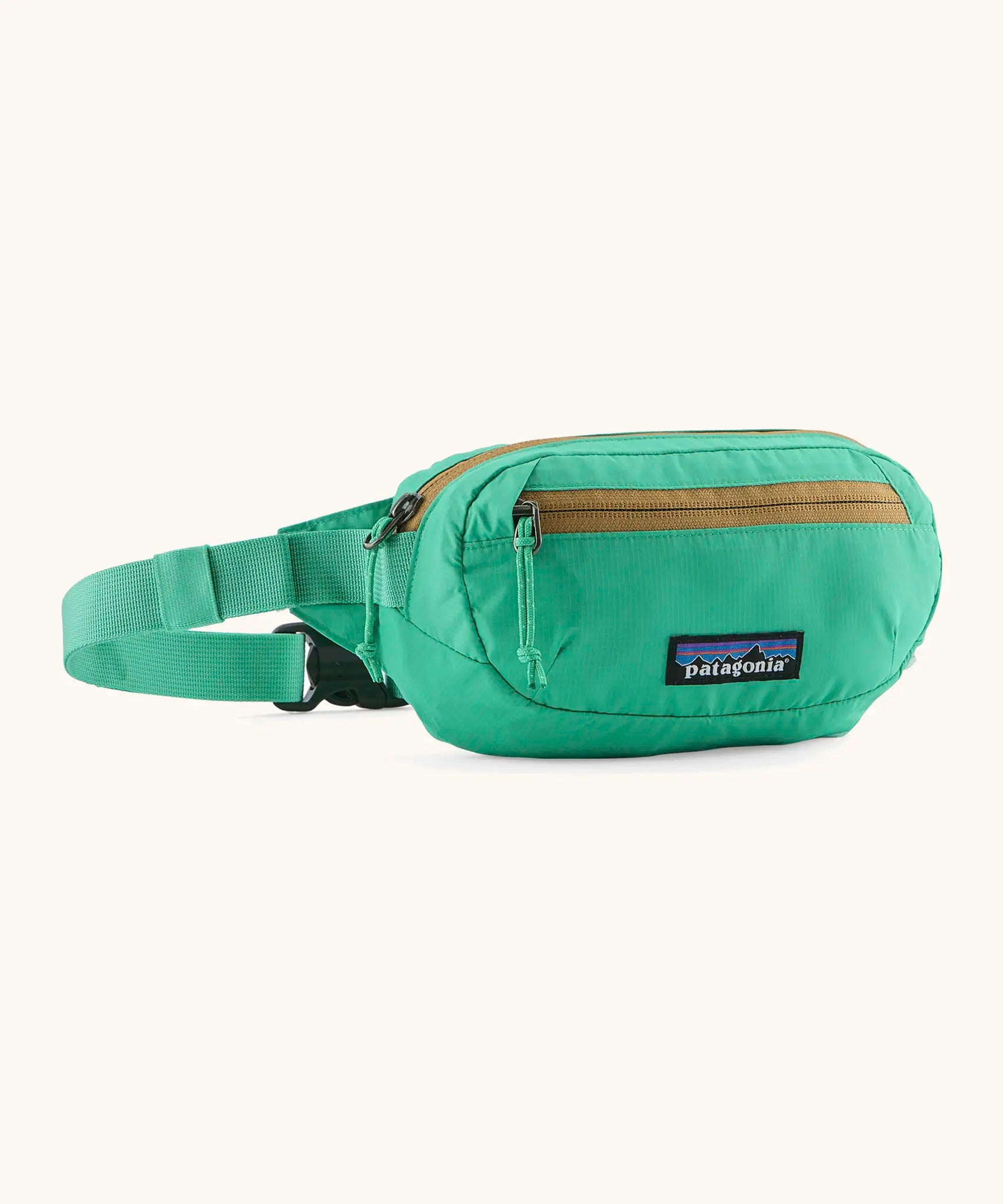 The Patagonia Terravia Mini Hip Pack is a compact 1-litre bum bag designed to carry the essentials when you want to travel light. Made from 100% recycled nylon ripstop, this lightweight hip bag is weather resistant, packable, and built to handle busy days, festivals, and travel alike. Finished in Aqua Stone, it features a bright turquoise body with a gold contrast zip.