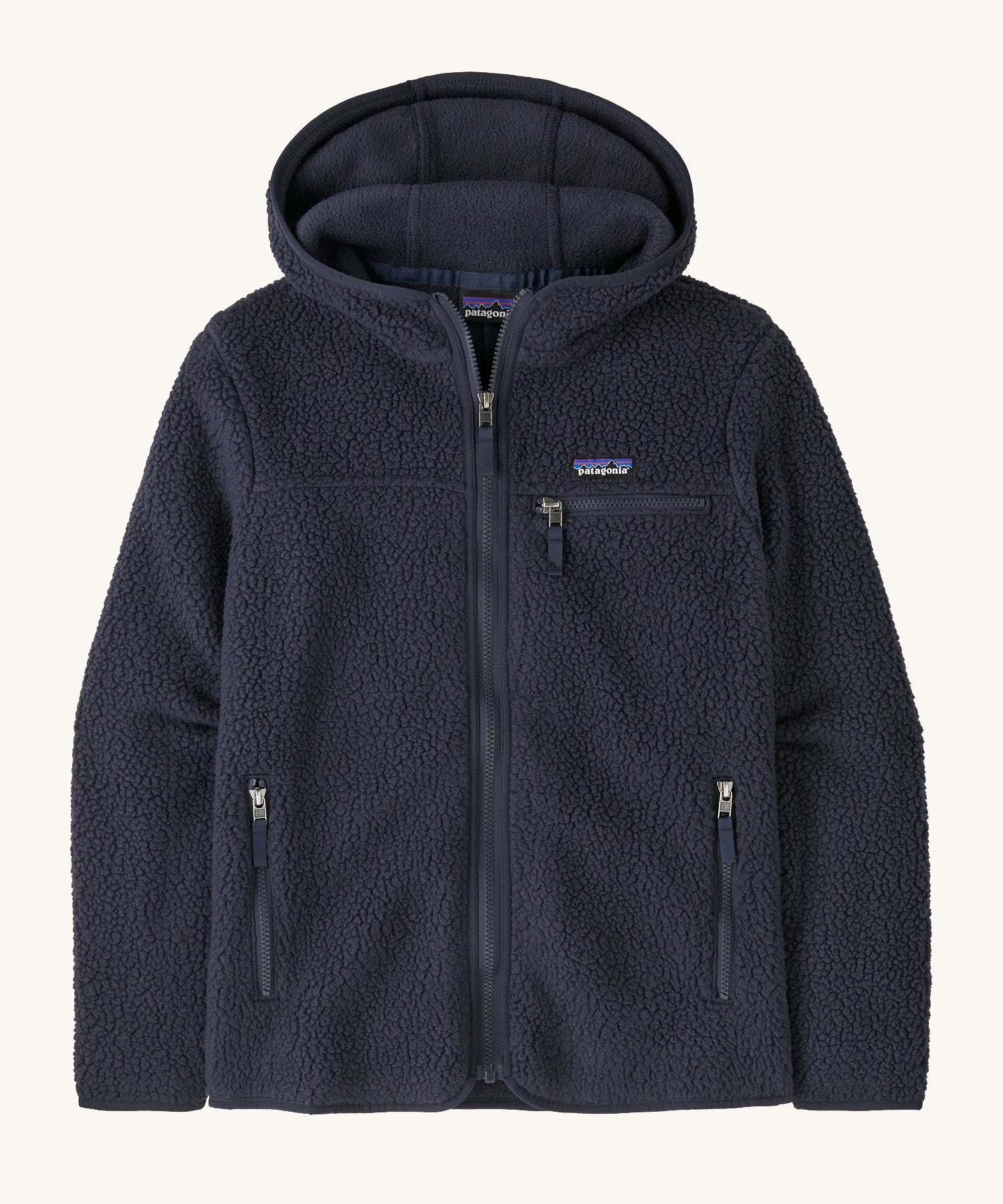 Inspired by Patagonia classics, but made using modern technology, this 100% recycled polyester shearling hoody fleece is fluffy, warm and has minimal environmental impact. Great for layering in cold weather or wearing on its own as a jacket when it's mild.
